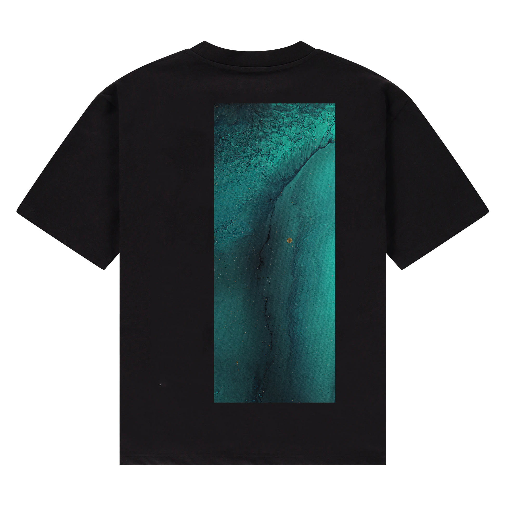 Over-sized t-shirt in black, custom made fit, featuring the stunning Aerial by artist Laura Kamphuis. See more of here work on her website.