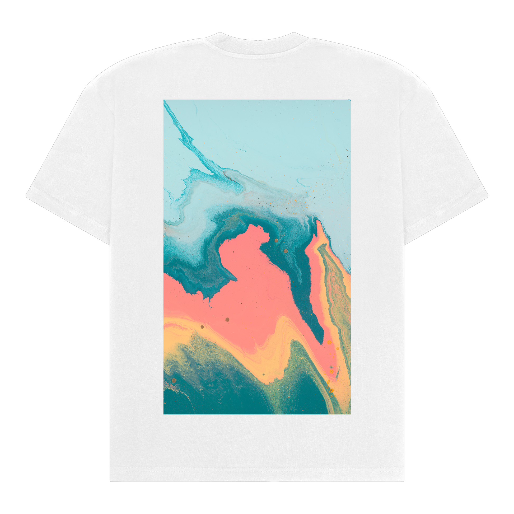 Over-sized t-shirt in off-white, featuring the stunning Barbuda Pink by artist Laura Kamphuis. This artwork is also available as a Fine Art Print on her website.